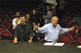 Brizzio dirige y Marcelo Lombardero observa lo que pasa sobre el escenario. Al